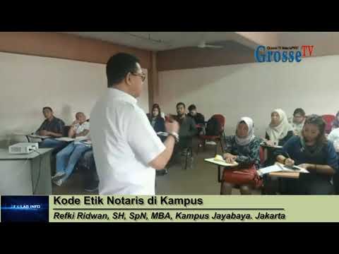 Kode Etik Notaris merupakan aturan yang harus dijalani, suka atau tidak suka oleh seseorang telah diangkat menjabat sebagai Notaris. Karena itu, Majalah Grosse Digital (MGD)/GrosseTV sedikit memberikan informasi kepada pemirsa mengenai apa Kode Etik Notaris, dalam hal ini langsung dari salah satu kampus swasta di Jakarta, yaitu Universitas Jayabaya, yang pengajarnya merupakan salah satu pengurus organisasi INI, yaitu Refki Ridwan, SH, SpN, MBA. Selamat menyaksikan dan semoga bermanfaat Salam kompak dan sukses selalu dari MGD dan GrosseTV